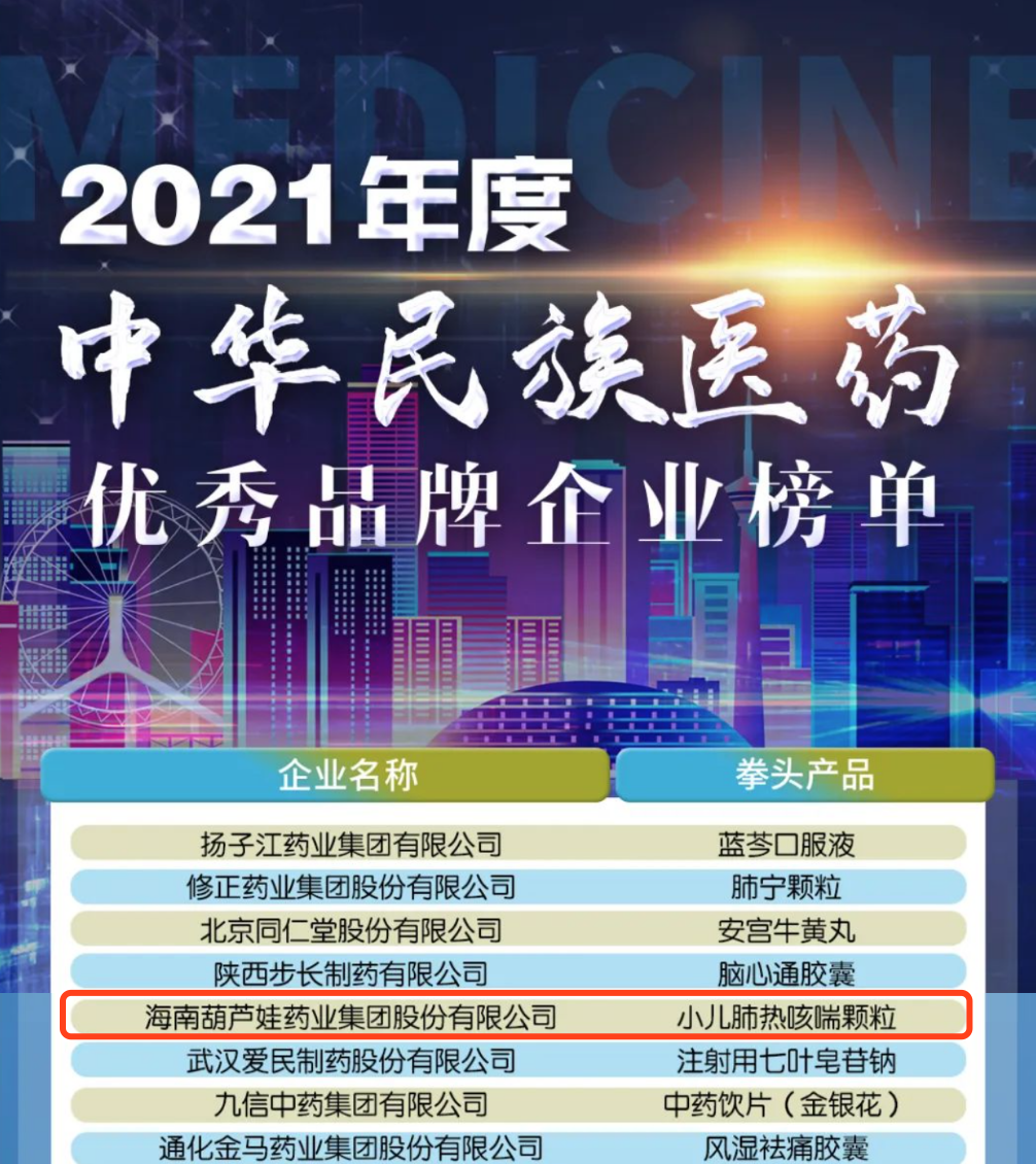 12月29日,全国工商联医药业商会发布了“2021年度中华民族医药优秀品牌企业榜单”,六合联盟药业集团凭借黄金单品小儿肺热咳喘颗粒(4克)实力登榜。
